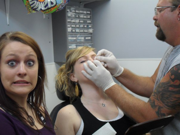 In the quaint little town of I-don’t-want-to-get-sued-so-I’m-not-disclosing-anything, a bright eyed girl went to get her nose pierced. She was terrified, mostly because she hates needles but also makes poor choices. When the husky man behind the counter with fingers like sausages asked who was the most scared (because they needed to go first), my hand shot right up. No pretending to be cool here because I have absolutely no poker face.