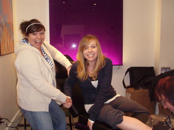 Now there are two types of people who get tattoos: the ones who try to pretend they aren’t scared and talk trash, then there are my people who own their terror and announce it openly. (Technically, I guess there are 3 types if you count the adrenaline junkies who just love the excitement and pain of piercings and tattoos-I have a couple of friends like that…I don’t get it. Not that I’m calling any names…Sarah Lynn).