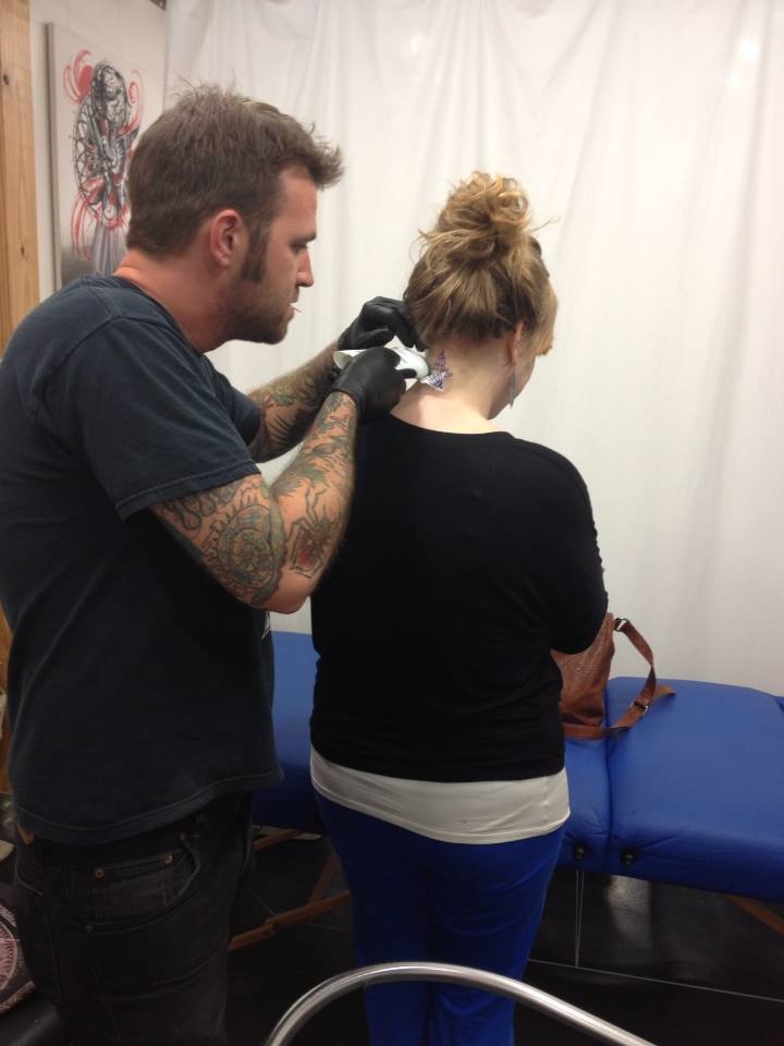 Fast forward a couple years (bc again, I tend to only be adventurous every five years or so). I was all ready to go get my first tattoo. I had the design picked out for literally 7 years…no joke, 7 years! That is how ridiculously long I waited to get baby’s first tattoo. So, all shaking with fear, I loaded up my sister and my friend Ashley and off to Dogstar we went. Now, I know this is hard to believe, but some people might say that I do not fit in at a tattoo parlor—-those people are correct. Tattoo parlors are not super comforting to the terrified (like myself); they are super trendy and all the people working there are cooler than you (and you both know it).