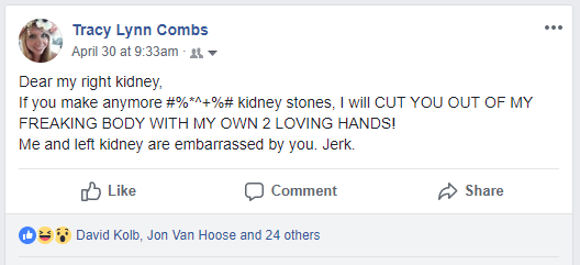So I put together the following medical journal explaining what it’s actually like as you move through the many stages of a Kidney Stone.
